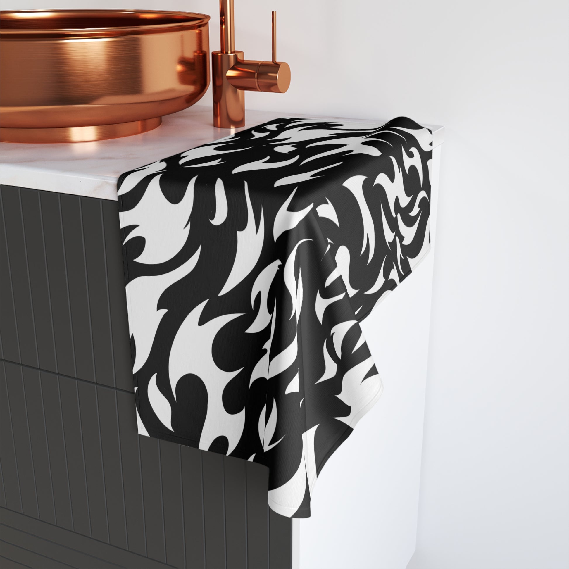 Enhance any bathroom area with a custom hand towel that adds character to its surroundings. Made with a polyester front that is a perfect canvas for printing and a soft cotton back, this premium hand towel is soft, light, and absolutely chic.