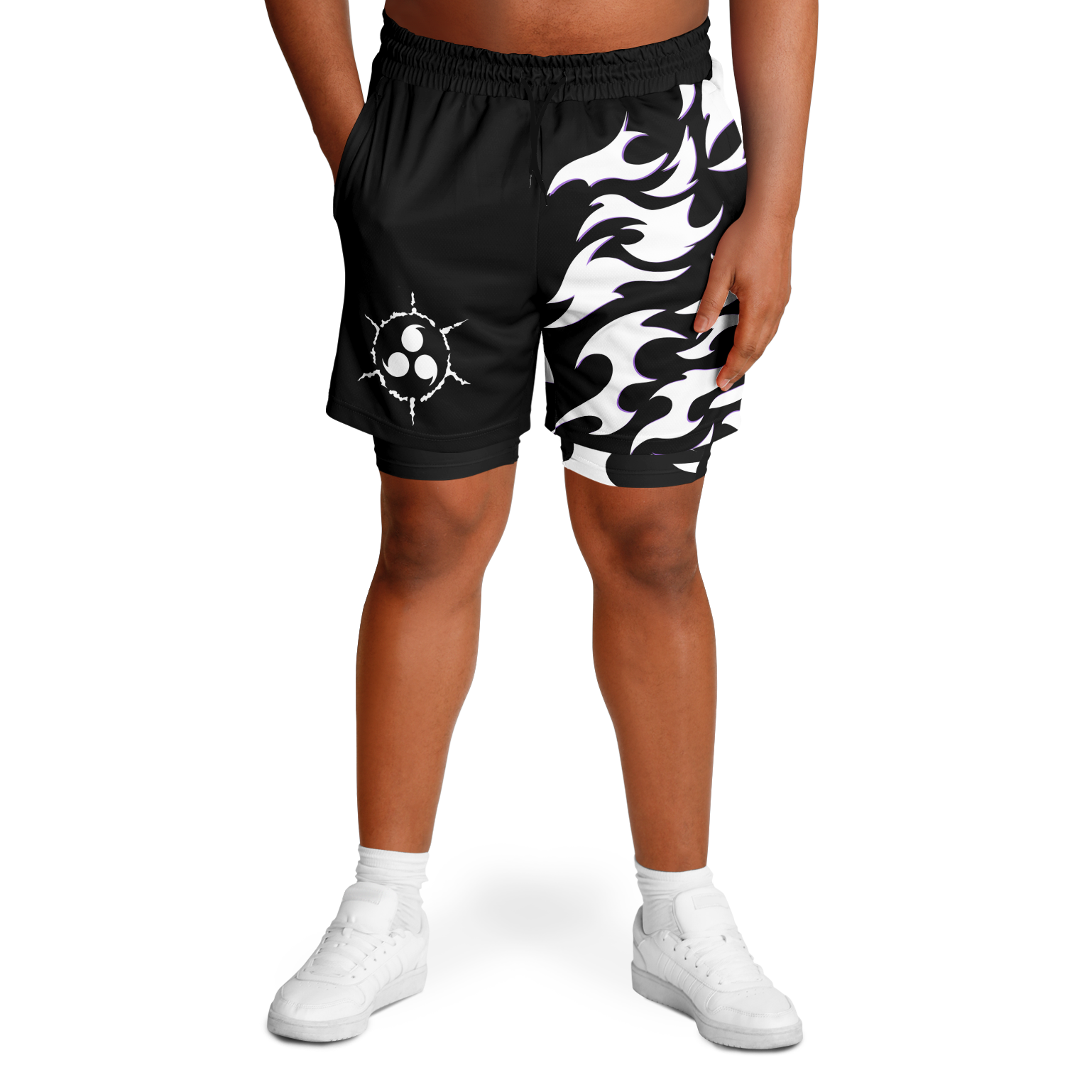 Curse Mark White Men's 2-in-1 Shorts - AOP