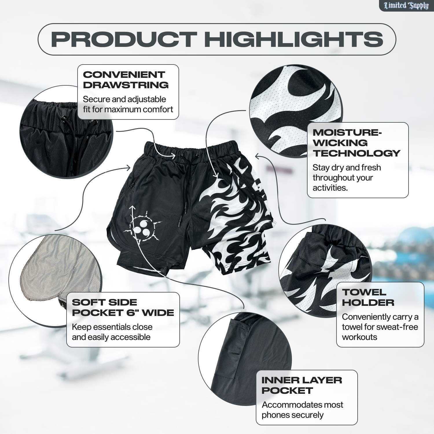 Get ready to take your physical activities to the next level with your workout shorts. The elastic built-in compression tights are crafted with a stretchy and smooth fabric, boosting your performance and ensuring greater flexibility for a wide range of movements.